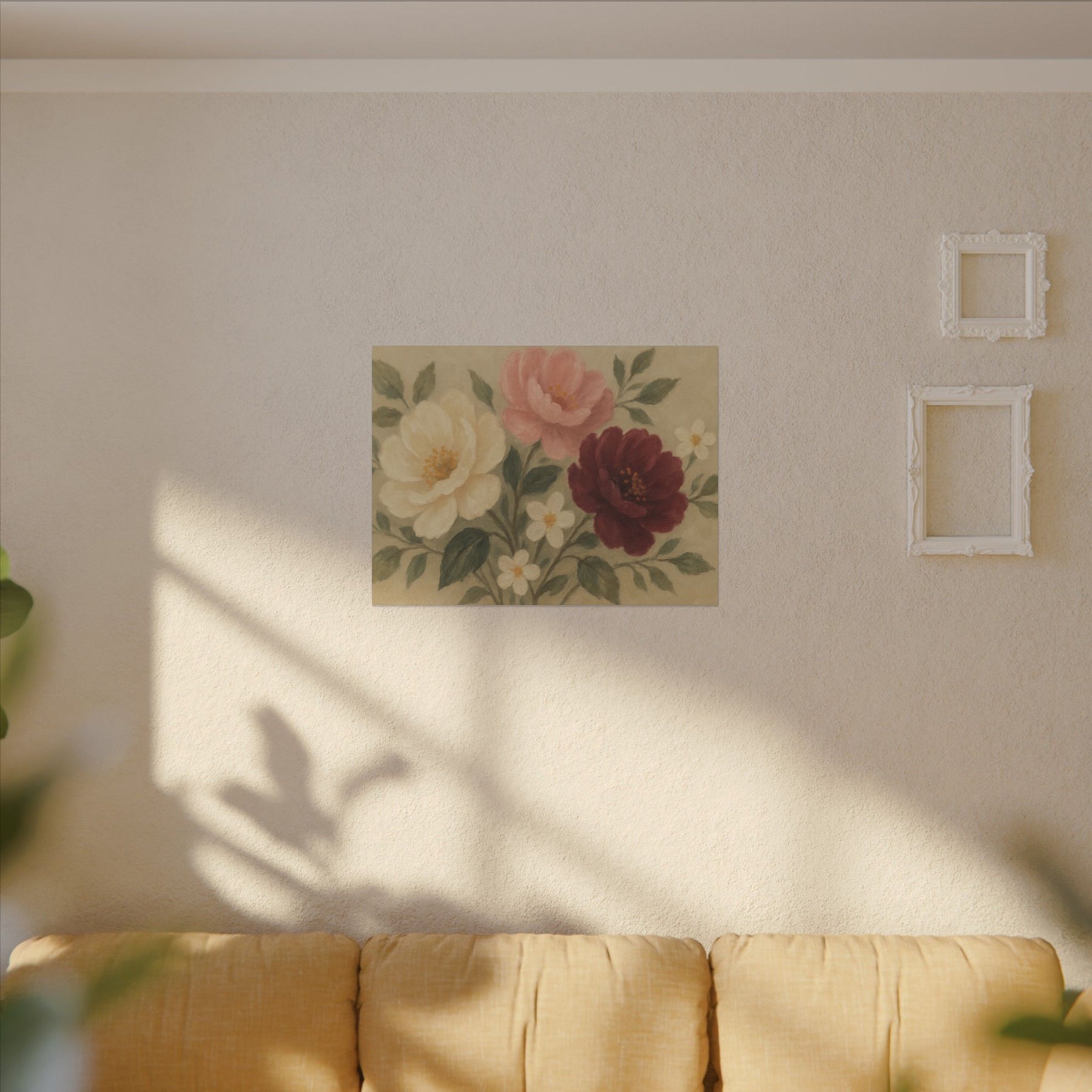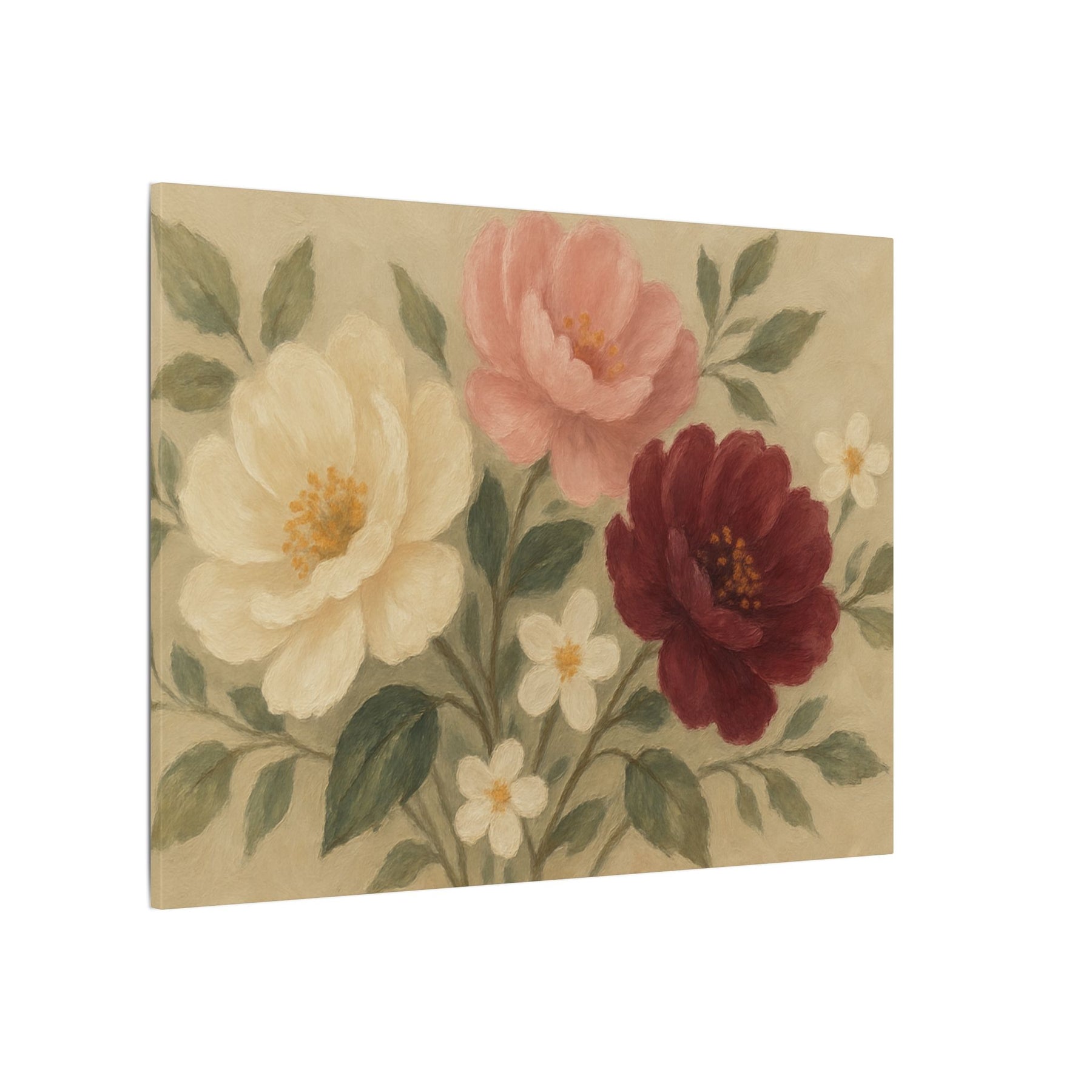 Embrace the elegance of classic florals with Timeless Petal Harmony — a graceful arrangement of deep crimson, blush pink, and ivory blooms painted in a rich, hand-crafted style.