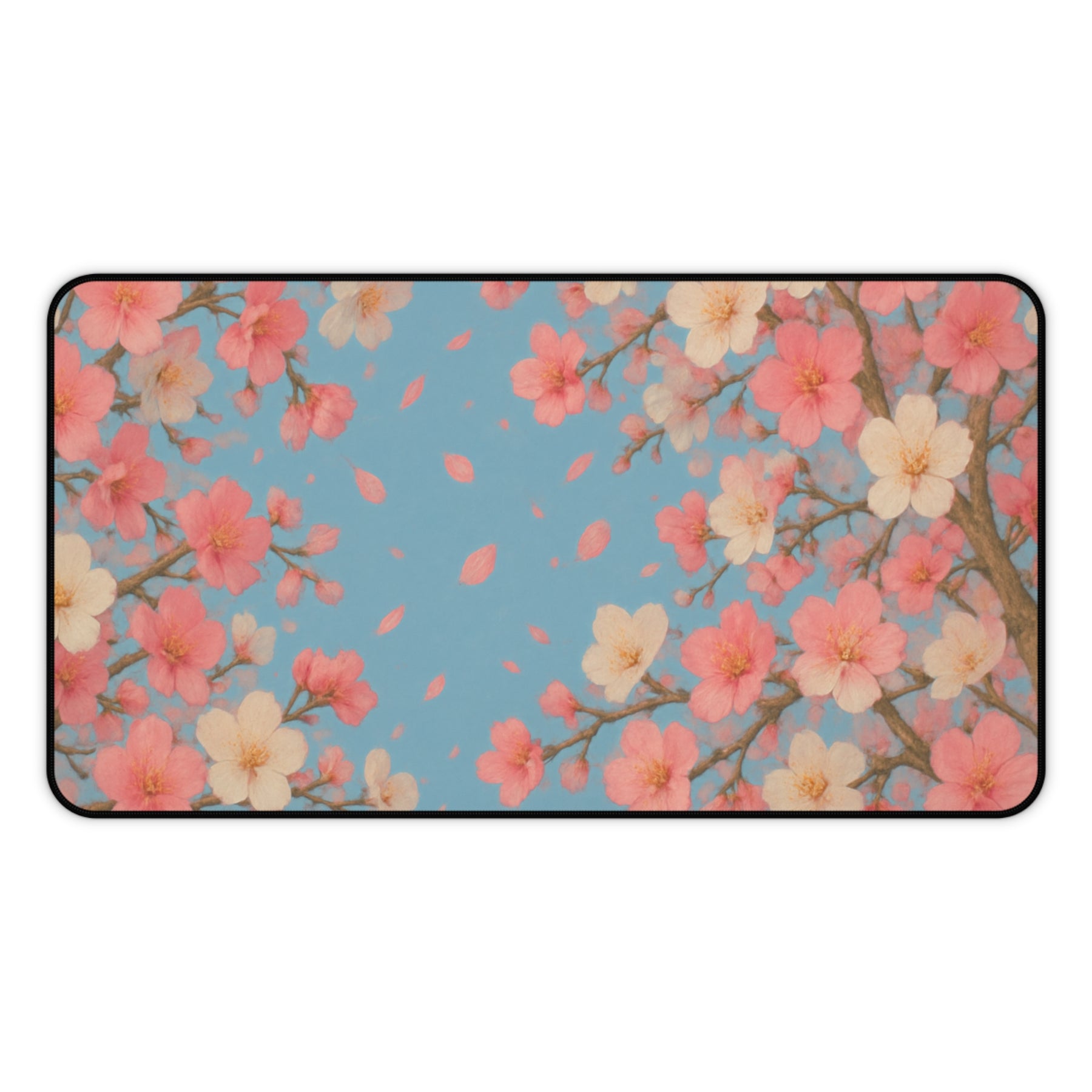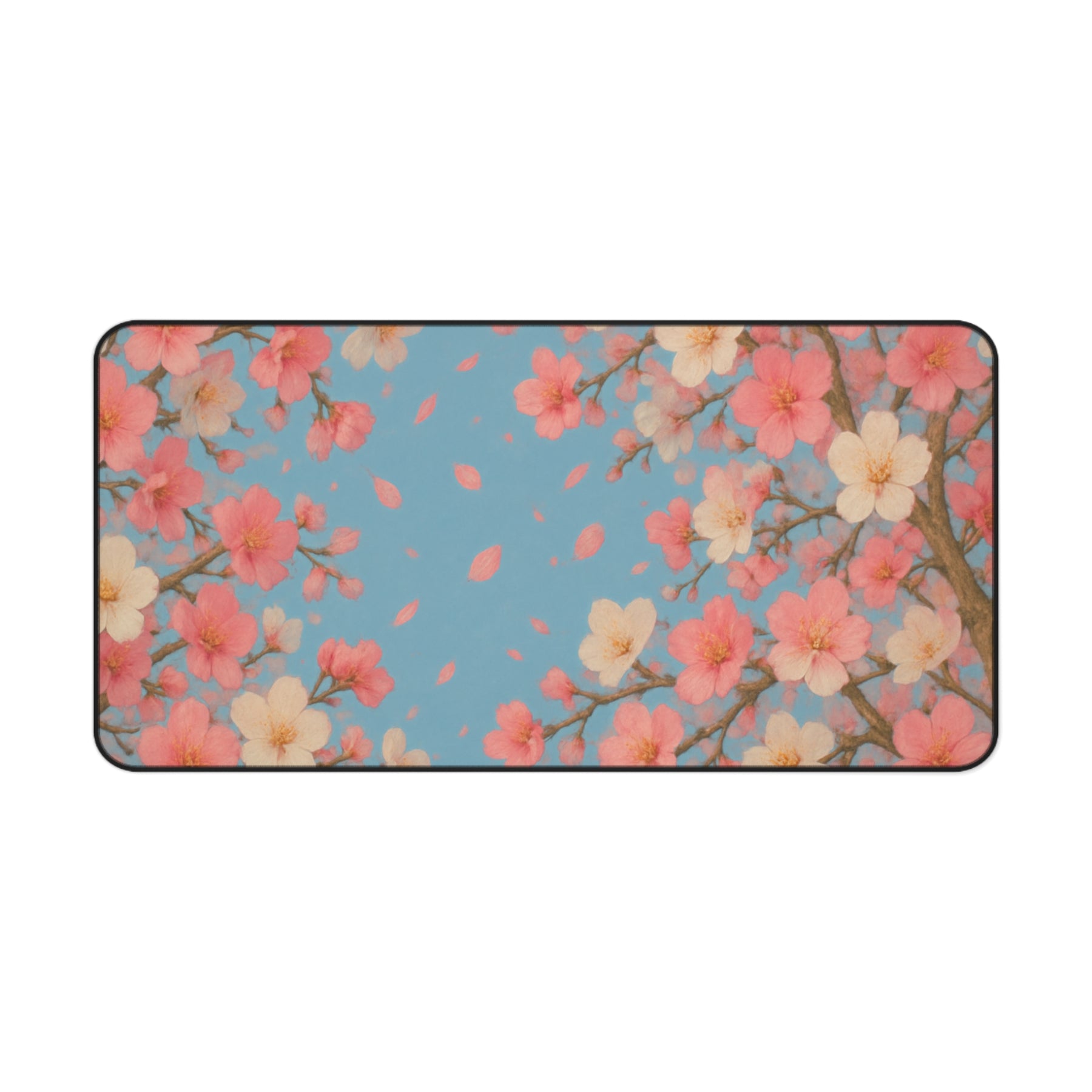 Bring the gentle beauty of spring to your workspace with the Petal Drift XXL Desk Mat. Featuring soft pink and white blossoms drifting gracefully across a serene blue sky, this peaceful design captures the feeling of calm, clarity, and renewal — transforming your desk into a space that inspires focus and creativity.